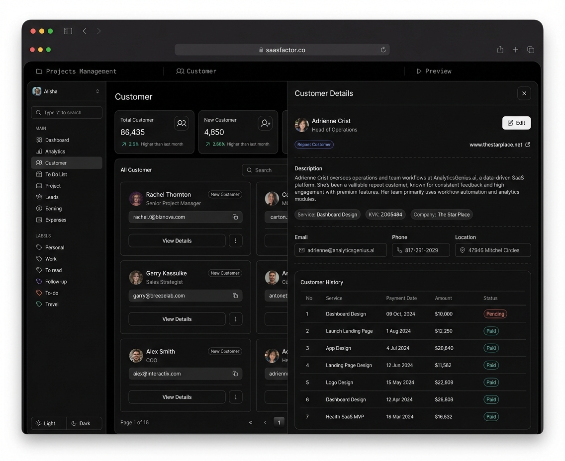 จัดการข้อมูลลูกค้า, ติดตามสถานะงานขาย, และสร้างความสัมพันธ์ระยะยาวได้อย่างเป็นระบบ