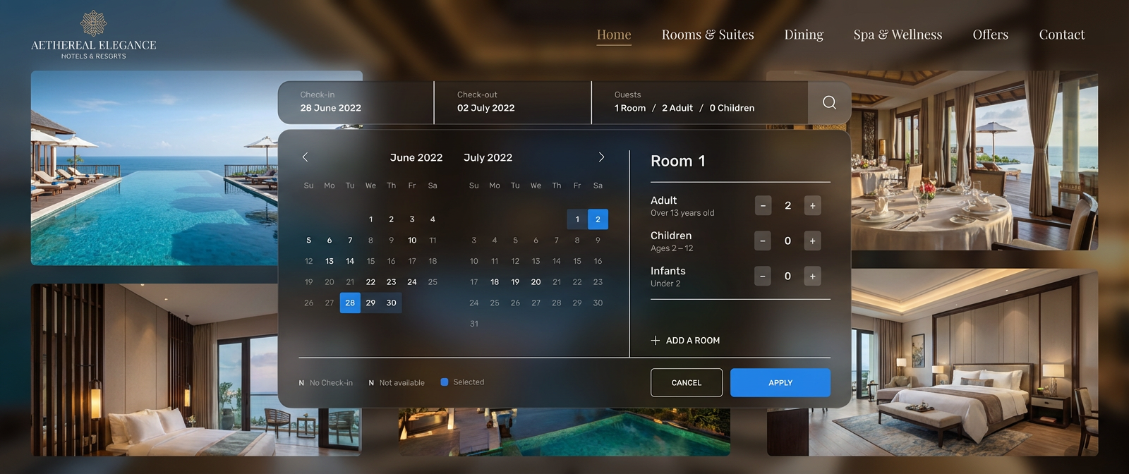 ให้ลูกค้าเช็ควันว่าง, เลือกประเภทห้อง, และชำระเงินได้ทันทีบนเว็บไซต์ของคุณตลอด 24 ชม.