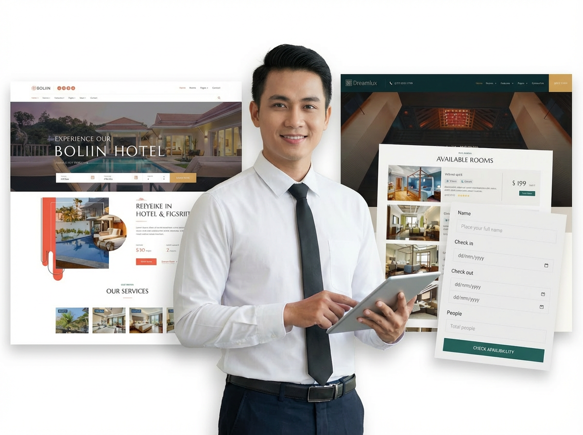 สร้างเว็บไซต์ที่พักที่สวยงามระดับพรีเมียม พร้อมระบบจองห้องพักในตัวที่ใช้งานง่ายและปลอดภัย