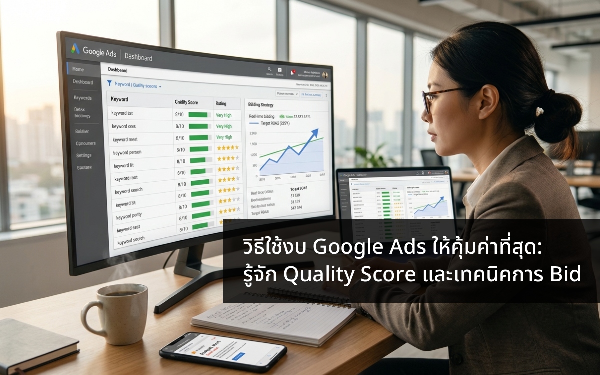 งบโฆษณา Google Ads บานปลาย? เรียนรู้ความลับของ Quality Score และ Ad Rank ที่ช่วยให้คุณจ่ายค่าคลิกถูกลง พร้อมเทคนิคการ Bid อย่างมืออาชีพเพื่อใช้งบให้คุ้มค่า